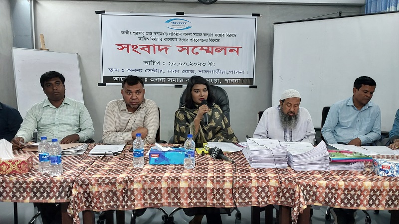 সম্প্রতি দেশের একটি গণমাধ্যমে পাবনার ‘অনন্য সমাজ কল্যাণ সংস্থা’ কে নিয়ে প্রকাশিত সংবাদ সঠিক নয় বলে দাবী করেছেন সংস্থার নির্বাহী পরিচালক বরনা খাতুন। তিনি বলেন, সংস্থাকে নিয়ে ষড়যন্ত্র চলছে। একটি পক্ষ অনন্য সমাজ কল্যাণ সংস্থাকে বন্ধ করতে নানা অপচেষ্টায় লিপ্ত। সোমবার দুপুরে সংস্থার প্রধান কার্যালয়ে আয়োজিত সংবাদ সম্মেলনে তিনি এ দাবী করেন।