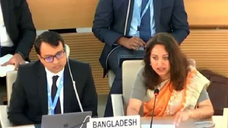 জেনেভায় বাংলাদেশে স্থায়ী মিশনের ভারপ্রাপ্ত স্থায়ী প্রতিনিধি সঞ্চিতা হক সংলাপে বাংলাদেশের পক্ষে অংশ নেন। তিনি বলেন, বাংলাদেশ রোহিঙ্গা প্রত্যাবাসন শুরুর জন্য সংশ্লিষ্ট সব পক্ষের সঙ্গে যোগাযোগ অব্যাহত রেখেছে। এ বিষয়ে তিনি রাখাইনে রোহিঙ্গাদের আত্তীকরণের জন্য তাদের জীবিকার ব্যবস্থা উন্নয়নে বিনিয়োগ করতে আন্তর্জাতিক সম্প্রদায়ের প্রতি আহ্বান জানান। তিনি মিয়ানমারে যুদ্ধরত সব পক্ষকে রোহিঙ্গাদের সুরক্ষা দেওয়া এবং তাদের নিরাপত্তা নিশ্চিত করার আহ্বান জানান। তিনি বাংলাদেশে আশ্রয় নেওয়া রোহিঙ্গাদের জন্য পর্যাপ্ত মানবিক সহায়তার আহ্বান জানান।