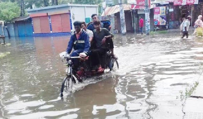 শহরে পানি নিষ্কাশনব্যবস্থা ভালো না থাকায় সড়ক গুলোতে পানি জমে যায়। যা চলে দুপুর প্রায় আড়াইটা পর্যন্ত। অঝোর ধারার এ বৃষ্টিপাতে নিমিষেই তলিয়ে