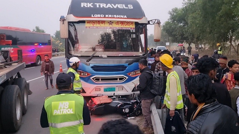 এই ঘটনায় নড়াইল এক্সপ্রেস পরিবহনের এক যাত্রী দাবি করেন, এক্সপ্রেসওয়েতে শিবচর হাইওয়ে পুলিশ মোটরসাইকেলটি কে সিগন্যাল দেয়। মোটরসাইকেল টি সাইড করতে গেলে পিছন থেকে আসা নড়াইল এক্সপ্রেস পরিবহন গতি নিয়ন্ত্রণ করে না পেরে মোটরসাইকেলকে পিছন থেকে চাপা দেয়। পরে চাকায় পিষ্ট হয়ে ঘটনাস্থলে মোটরসাইকেল আরোহী নিহত হন। এই ঘটনার দায় সম্পূর্ণ হাইওয়ে পুলিশের।
