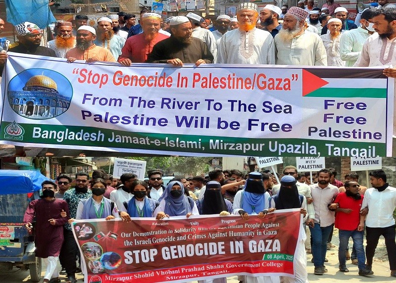টাঙ্গাইলের মির্জাপুরে ফিলিস্তিনিদের ওপর ইসরায়েলের আগ্রাসনের বিরুদ্ধে বিক্ষোভ মিছিল অব্যাহত রয়েছে। মঙ্গলবার ( ৮ এপ্রিল) সকালে শহীদ ভবানী প্রসাদ সাহা সরকারি কলেজের শিক্ষার্থীরা বিক্ষোভ মিছিল করে।