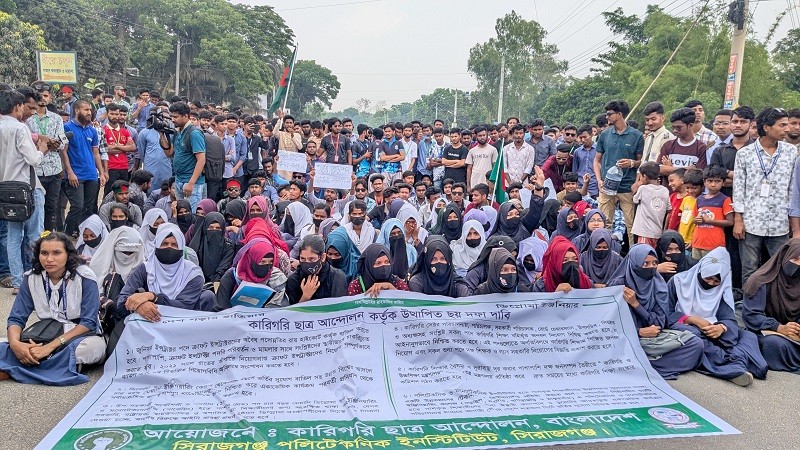 ক্রাফট ইন্সট্রাকটর ও জুনিয়র ইন্সট্রাকটর পদে পদোন্নতি বাতিলসহ ছয় দফা দাবিতে সারা দেশের ন্যায় সিরাজগঞ্জে সমাবেশ করেছে সিরাজগঞ্জ পলিটেকনিক ইনস্টিটিউটের শিক্ষার্থীরা।