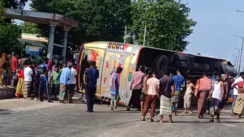 ময়মনসিংহ কোতোয়ালি মডেল থানার ভারপ্রাপ্ত কর্মকর্তা (ওসি) মো. ফিরোজ হোসেন বলেন, জুনায়েদ এক্সপ্রেস নামের যাত্রীবাহী বাসটি শেরপুর থেকে ছেড়ে এসে ঢাকার দিকে যাচ্ছিল। সকাল পৌনে ৮টার দিকে চায়না মোড় এলাকায় গ্যাসলিন ফিলিং স্টেশনের সামনে পর্যন্ত আসতেই গাড়িটি নিয়ন্ত্রণ হারিয়ে সড়কে থাকা ডিভাইডারের ওপরে উঠে ডিভাইডার ভেঙে সড়কে উল্টে যায়। এ সময় ঘটনাস্থলেই বাসের হেলপার মঞ্জুরুল হাসান মারা যান। এতে আহত হয়েছেন অন্তত ১৯ জন যাত্রী। স্থানীয় লোকজন আহতদের উদ্ধার করে ময়মনসিংহ মেডিকেল কলেজ হাসপাতালে পাঠিয়েছেন।