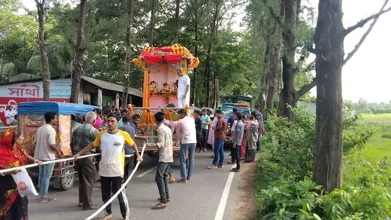প্রত্যক্ষদর্শীরা জানান, রথযাত্রা চলাকালে রথের উপরের একটি অংশ পাকা রাস্তায় ঝুলে থাকা বিদ্যুতের তারের সংস্পর্শে আসে। এতে রথে এবং পাশে থাকা অন্তত সাত থেকে আটজন বিদ্যুৎস্পৃষ্ট হয়ে আহত হন। এ সময় উপস্থিতদের মধ্যে আতঙ্ক ছড়িয়ে পড়ে।
