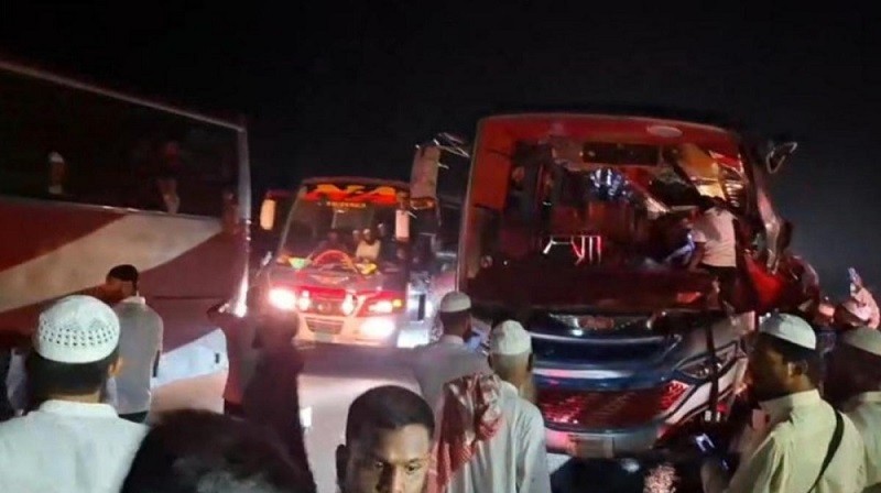 হাসাড় হাইওয়ে পুলিশ সূত্রে জানা গেছে, হামদান পরিবহন বাসটি যশোর জেলার নোয়াপাড়া হতে ঢাকার সোরহারর্দী উদ্যানে জনসভায় যাচ্ছিল। এক্সপ্রেসেওয়েতে চলন্ত অবস্থায় একটি মিনি ট্রাক বাসটির পেছনে সজোরে ধাক্কা দেয়। ঘটনাস্থলে বাসের ২ জন যাত্রী নিহত হন।