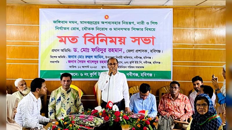 হবিগঞ্জের নবীগঞ্জ উপজেলার কুর্শি ইউনিয়ন পরিষদে জঙ্গিবাদ দমন, মাদকদ্রব্যের অপব্যবহার নিয়ন্ত্রণ, নারী ও শিশু নির্যাতন রোধ, যৌতুক নিরোধ ও মানসম্মত শিক্ষার বিষয়ে মতবিনিময় সভায় প্রধান অতিথির বক্তব্যে জেলা প্রশাসক ড. মো. ফরিদুর রহমান বলেছেন, নির্ধারিত সরকারি ফির অতিরিক্ত অর্থ নিলে পরের দিন সংশ্লিষ্ট সচিব তাঁর পদে থাকবেন না।