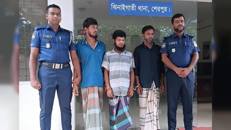 গ্রেপ্তার তিনজন হলেন- গোমড়া এলাকার মো. দেলোয়ার হোসেন, মো. কোরবান আলী ও মো. আব্দুস ছামাদ। শনিবার দিবাগত রাতে উপজেলার নলকুড়া ইউনিয়নের গোমড়া এলাকা থেকে তাদের গ্রেপ্তার করা হয়।