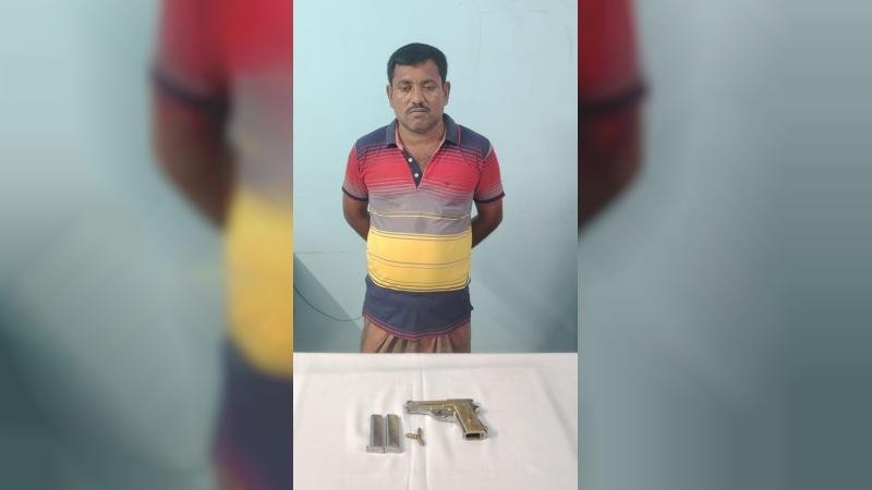 মেহেরপুরের গাংনীতে পিস্তল, ম্যাগাজিন ও গুলিসহ গোলাম মোস্তফা ডাকু (৫০) নামের একজনকে গ্রেপ্তার করেছে যৌথ বাহিনী। আজ সোমবার ভোরে পৌরসভার চৌগাছা (ভিটা পাড়া) এলাকার নিজ বাড়ি থেকে তাকে গ্রেপ্তার করা হয়। গ্রেপ্তারকৃত গোলাম মোস্তফা ডাকু চৌগাছা (ভিটা পাড়া) গ্রামের মৃত আজিজুল হক খোকনের ছেলে।