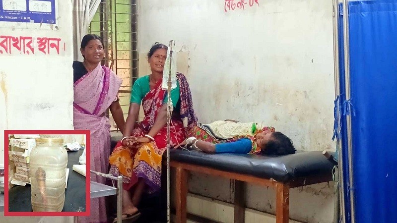 সুমিত্রা রানী সোনাপোতা গ্রামের উপেন্দ্র নাথ রায়ের স্ত্রী। তার ছেলে সুরেশ জানান, আমরা বুঝতে পারছিলাম না এটি কী সাপ। তাই সাপটিকে সঙ্গে নিয়ে হাসপাতালে আসি।