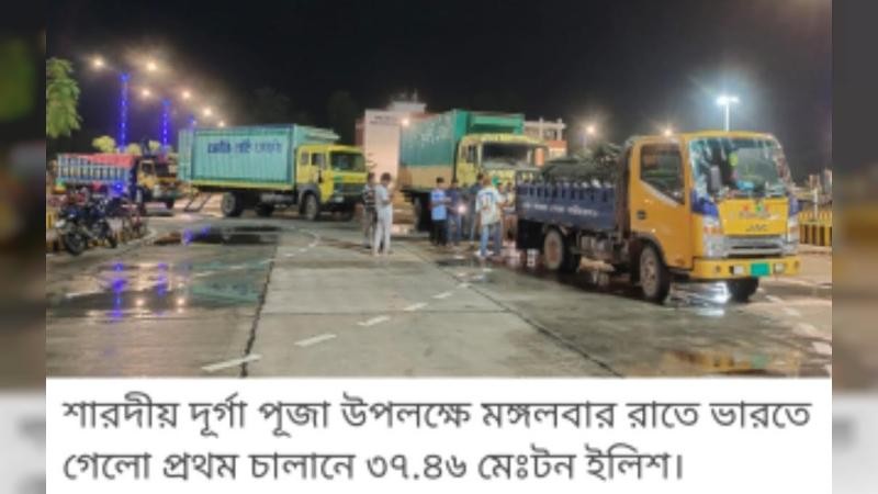 আসন্ন শারদীয় দুর্গাপূজা উপলক্ষে ভারতের গেলো প্রথম চালানে ৩৭ দশমিক ৪৬ মেট্রিকটন ইলিশ।
