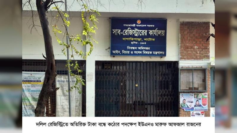 নাটোরের বাগাতিপাড়ায় দলিল রেজিস্ট্রির নামে অতিরিক্ত টাকা আদায়ের বিরুদ্ধে কঠোর অবস্থান নিয়েছেন উপজেলা নির্বাহী কর্মকর্তা (ইউএনও) মারুফ আফজাল রাজন। তিনি ঘোষণা দিয়েছেন, সরকারি নির্ধারিত ফির বাইরে কোনো অতিরিক্ত টাকা আদায়ের অভিযোগ প্রমাণিত হলে সংশ্লিষ্ট দলিল লেখকের বিরুদ্ধে তাৎক্ষণিক আইনগত ব্যবস্থা নেওয়া হবে।