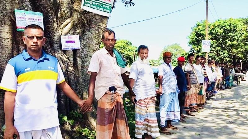 বুধবার (২৪ সেপ্টেম্বর) দুপুর ১২ টার দিকে নাটোরের মাধনগর রেলওয়ে প্লার্টফমে এই মানববন্ধন অনুষ্ঠিত হয়।