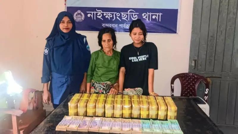 বান্দরবানে নাইক্ষ্যংছড়িতে অভিযানে বিপুল পরিমাণ ইয়াবা ও ১০ লাখ টাকাসহ দুই উপজাতি নারীকে গ্রেপ্তার করেছে পুলিশ। এসময় তাঁদের কাছ থেকে ১ লাখ ২০ হাজার ইয়াবা ও নগদ ১০ লাখ টাকা উদ্ধার করা হয়।