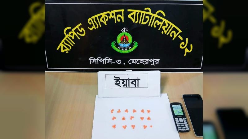 র্যাব জানায়, অধিনায়ক র্যাব-১২ এর নির্দেশনায় মেহেরপুর ক্যাম্পের একটি চৌকস দল রামনগর টু হাড়াভাঙ্গা সড়কে অভিযান চালায়। এ সময় স্থানীয় মুদি দোকানের সামনে থেকে ইয়াবাসহ মাসুদ রানা (২৬) নামের এক যুবককে হাতেনাতে আটক করা হয়।