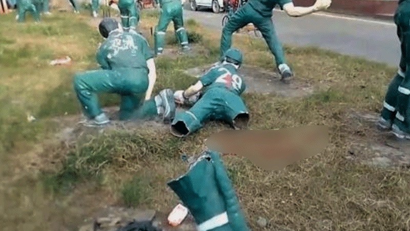 ভাইরাল হওয়া একটি ভিডিওতে দেখা গেছে, দুই যুবক মাটিতে পড়ে থাকা একটি স্ট্যাচুর পায়ের ভেতর বাঁশ ঢুকিয়ে সেটি জোড়া দেওয়ার চেষ্টা করছেন।