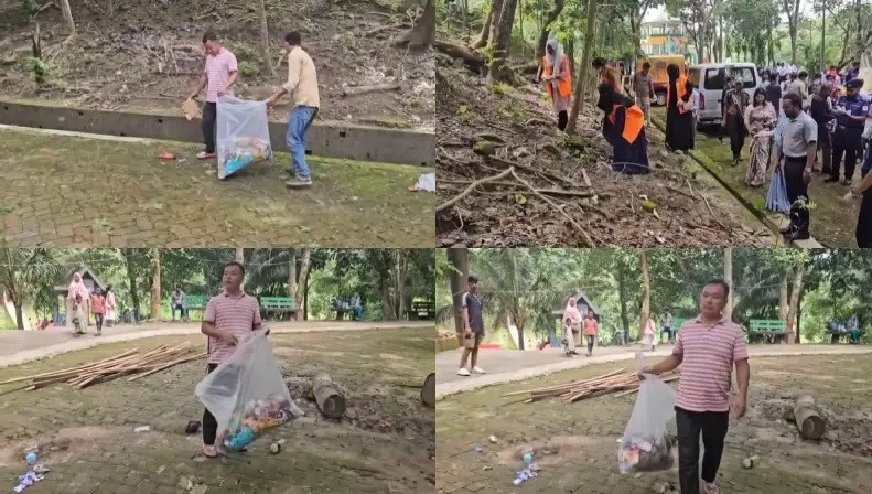 শনিবার (২৭ সেপ্টেম্বর) ঘটে যাওয়া এ ঘটনার ভিডিওতে দেখা যায়, জেলা প্রশাসনের কয়েকজন কর্মচারী পলিব্যাগ ভর্তি প্লাস্টিক বোতল ও অন্যান্য ময়লা-আবর্জনা একটি স্থানে ফেলে দিচ্ছেন। পরে জেলা প্রশাসক শামীম আরা রিনির উপস্থিতিতে কর্মকর্তারা ও স্বেচ্ছাসেবী সংগঠন বিডি ক্লিনের সদস্যরা তা পরিষ্কার করেন।