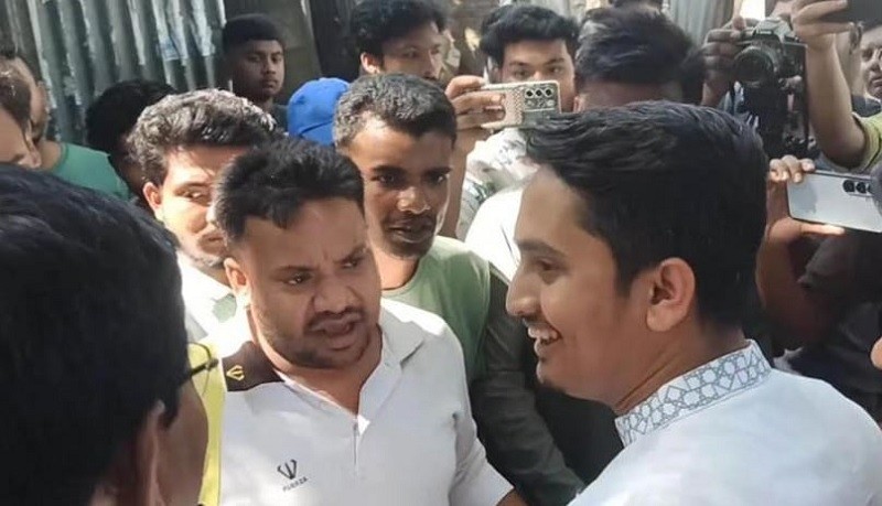 এ সময় সারজিস আলম আসুন হাঁটতে হাঁটতে কথা বলি, এ সময় হাসিনুরসহ তিনি হাঁটা শুরু করেন। হাসিনুর রহমান বলেন, ‘জুলাই আন্দোলনে আপনার ভূমিকা আছে। আমরা চাই, আপনি বড় নেতা হবেন। কিন্তু আপনার ডানে-বাঁয়ে আওয়ামী লীগের লোকজন ঘুরছে।’ এর উত্তরে সারজিস আলম বলেন, ‘ভাই, আপনি এটা ভালো করে জানেন, যেদিন ওরা ফিরে এসে আপনাকে ধরবে, ওই দিন আমারও গলা কাটবে। এটা তো মানেন।’ একপর্যায়ে তিনি হাসিনুরের সঙ্গে হাত মিলিয়ে বলেন, ‘চলেন, আমরা সবাই একসঙ্গে চা খাব।’