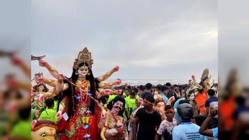 এর আগে, আজ ভোর থেকেই মণ্ডপে মণ্ডপে ভক্তদের ভিড় দেখা যায়। অঞ্জলির মাধ্যমে দেবীর কাছে রোগ, শোক, ক্লেশ থেকে মুক্তি প্রার্থনা করেন সনাতন ধর্মাবলম্বীদের। অঞ্জলি শেষে দর্পণ ও ঘট বিসর্জনের মাধ্যমে দশমীর পূজার আচার শেষ হয়। এরপর দেবীকে বরণ করে সিঁদুর খেলায় মাতেন হিন্দু ধর্মালম্বীরা। এরপর শোভাযাত্রা করে প্রতিমা বিসর্জন স্থলে নিয়ে যাওয়া হয়। ঢাক-ঢোল, উলুধ্বনি ও শঙ্খধ্বনিতে মুখর ছিল পরিবেশ।