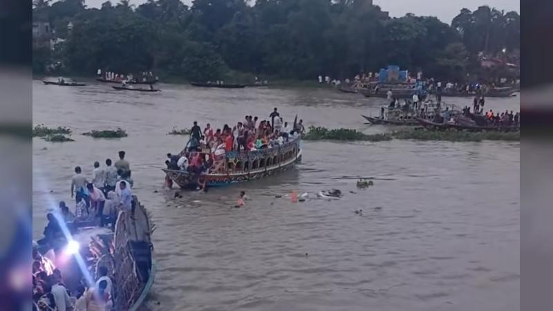 প্রত্যক্ষদর্শীরা জানান, বৃহস্পতিবার বিকেলে বিজয় দশমীতে প্রতিমা বিসর্জন দিতে পরিবারসহ একটি ইঞ্জিনচালিত নৌকায় ওঠেন তারা। নৌকায় মোট ১৮ জন যাত্রী ছিলেন। ঘাটের দিকে যাওয়ার সময় আরেকটি নৌকার সঙ্গে সংঘর্ষ হলে নৌকাটি উল্টে যায়। নৌকায় থাকা অন্যরা কেউ সাঁতরে তীরে উঠতে সক্ষম হন, আবার কেউ পাশের আরেকটি নৌকায় উঠে প্রাণে রক্ষা পান। তবে দক্ষিণ হিজলতলী এলাকার স্বপন সরকারের মেয়ে অঙ্কিতা রানী দাস (৫) ও তাপস দাসের ছেলে তন্ময় মনি দাস (৮) পানিতে তলিয়ে যান।