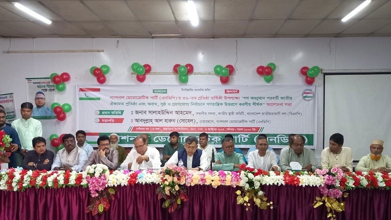 আজ (শনিবার) দুপুরে রাজধানীর রমনার ইঞ্জিনিয়ার্স ইনস্টিটিউশনের সেমিনার হলে ন্যাশনাল ডেমোক্রেটিক পার্টির (এনডিপি) ৩৬তম প্রতিষ্ঠাবার্ষিকী উপলক্ষে ‘গণঅভ্যুত্থান পরবর্তী জাতীয় ঐক্যমত প্রতিষ্ঠা, সুষ্ঠু ও গ্রহণযোগ্য নির্বাচনে গণতান্ত্রিক উত্তরণে করণীয়’ শীর্ষক এই আলোচনা সভার আয়োজন করে এনডিপি।