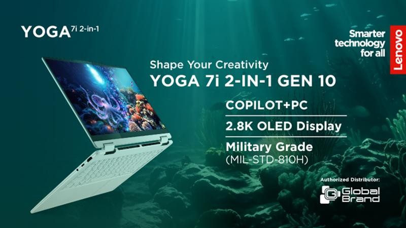 বাংলাদেশের শীর্ষস্থানীয় লেনোভো ডিস্ট্রিবিউটর গ্লোবাল ব্র্যান্ড পিএলসি বাজারে এনেছে নতুন প্রজন্মের Lenovo Yoga 7i 2-in-1 ল্যাপটপ। প্রিমিয়াম ডিজাইনের সমন্বয়ে এতে রয়েছে- Intel Lunar Lake, Copilot+ AI, এবং সর্বাধুনিক পারফরম্যান্স - যা চলতি পথে থাকা ক্রিয়েটর ও প্রফেশনালদের জন্য আদর্শ।