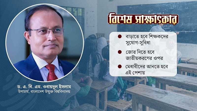 বাংলাদেশ উন্মুক্ত বিশ্ববিদ্যালয়ের (বাউবি) উপাচার্য ড. এ. বি. এম. ওবায়দুল ইসলাম বলেছেন, শিক্ষকদের অবস্থার উন্নতি না হলে জাতি বাঁচবে না। আর ভালো ও মেধাবীদের শিক্ষকতায় আনতে হলে তাদের মর্যাদা ও সুযোগ-সুবিধা বাড়াতে হবে।