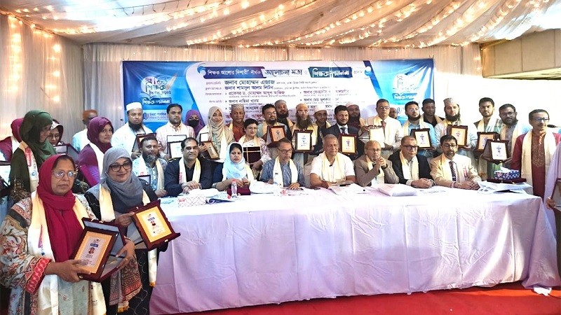 রবিবার বিকেলে উত্তরা ৬ নম্বর সেক্টরের কমিউনিটি সেন্টারে অনুষ্ঠিত আলোচনা সভা ও সম্মাননা প্রদান অনুষ্ঠানে শিক্ষাবিদদের হাতে ক্রেস্ট তুলে দেন অনুষ্ঠানের সভাপতি অধ্যাপক ড. আব্দুল লতিফ মাসুম, সাবেক উপাচার্য, পটুয়াখালী বিজ্ঞান ও প্রযুক্তি বিশ্ববিদ্যালয়। প্রধান আলোচক ছিলেন শামসুল আলম লিটন, চেয়ারম্যান, অতীশ দীপঙ্কর বিজ্ঞান ও প্রযুক্তি বিশ্ববিদ্যালয় ট্রাস্টি বোর্ড।