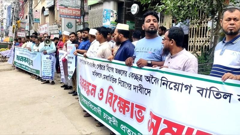 ইসলামী ব্যাংক বাংলাদেশ পিএলসি-তে এস আলম গ্রুপের কথিত অবৈধ নিয়োগ বাণিজ্যের বিরুদ্ধে কুমিল্লার বিভিন্ন স্থানে মানববন্ধন করেছেন ব্যাংকের গ্রাহকরা।