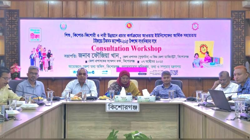 কিশোরগঞ্জে টাইফয়েড টিকাদান ক্যাম্পেইনের আওতায় ৯ লাখ ৫৬ হাজার ৭৭৪ জন শিশুকে টাইফয়েড জ্বরের টিকা দেওয়া হবে।