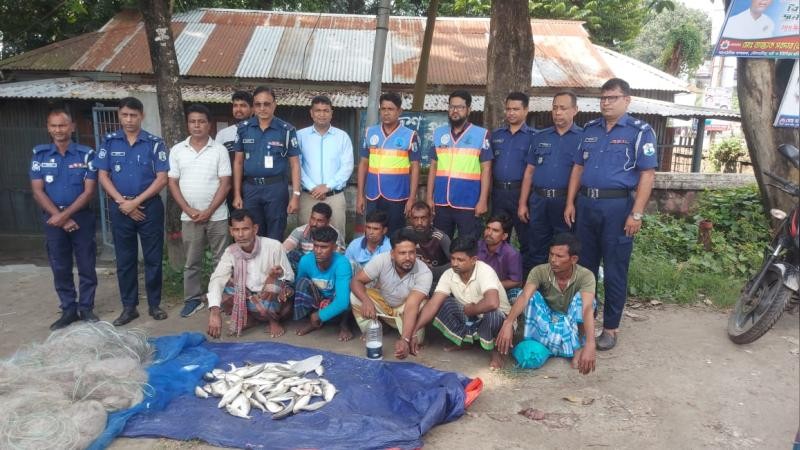 আটককৃত জেলেরা- ফরিদপুর কোতোয়ালি থানার গোলজার মন্ডলের মৃত আজাহার মোল্লার ছেলে মো. সালাম মোল্লা (৩৬), জয়নাল শেখের গ্রামের তারা সরদারের ছেলে ওবাইদুল সরদার (৩০), আকবর মালতের ডাঙ্গী এলাকার মো. আবসার মোল্লার ছেলে মো. ফজল মোল্লা (৩৫), মৃ লালন মোল্লার ছেলে মো. ছুরমান (৩২), মো. আলাউদ্দিনের ছেলে মো. আলমগীর (৩০), মো. ওসনান মোল্লার ছেলে মো. রুহুল আমিন (৩৩), মৃত ইসমাইল মোল্লার ছেলে মো. ইসাক মোল্লা (৪০), মৃত সোয়েদ কাজীর ছেলে মোতালেব কাজী (৪৫) ও রাজবাড়ীর গোয়ালন্দ উপজেলার দৌলতদিয়া ইউনিয়ন সাত্তার মেম্বার পাড়ার মৃত ইদ্রিস সরদারের ছেলে বাচ্চু সরদার (৩৫)।
