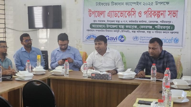 প্রধান অতিথি বলেন, একটি পাওয়ার পয়েন্ট উপস্থাপনার মাধ্যমে আগামী ১২ অক্টোবর ২০২৫ থেকে সারা দেশে একযোগে মাসব্যাপী টাইফয়েড টিকাদান ক্যাম্পেইন শুরু হবে। এর আওতায় শরীয়তপুরের ভেদরগঞ্জ উপজেলার ৯ মাস থেকে ১৫ বছর বয়সী সকল শিশুকে টাইফয়েড টিকা প্রদান করা হবে।
