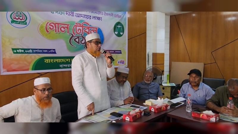 জেলা জামায়াতের আমির মাওলানা আবদুচ ছালাম আজাদের সভাপতিত্বে অনুষ্ঠিত গোলটেবিল বৈঠকে অন্যদের মধ্যে উপস্থিত ছিলেন নিরাপত্তা বিশ্লেষক অবসরপ্রাপ্ত লেফট্যানেন্ট কর্নেল মো. আইয়ুব, জেলা জামায়াতের সেক্রেটারি মাওলানা আব্দুল আউয়াল, অ্যাসিস্ট্যান্ট সেক্রেটারি গোলাম মোহাম্মদ তাজ, পৌর জামায়াতের সেক্রেটারি হারুনুর রশিদ প্রমুখ।