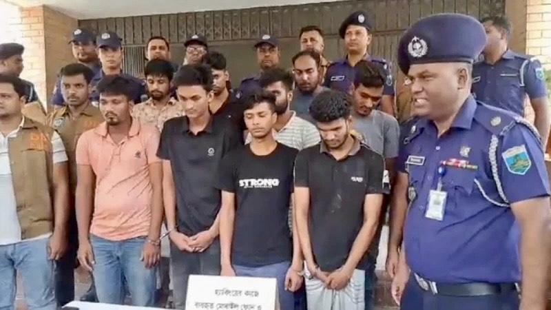 গ্রেপ্তারকৃতরা হলেন উপজেলার নওপাড়া গ্রামের মোসাব্বর হোসেনের ছেলে আরিফুল ইসলাম (৩০), বাবুল সরকারের ছেলে সোহাগ আলী (২৮), শাজাহান আলীর ছেলে ওবায়দুর আলী (২৪), ফজলুর রহমানের ছেলে রাসেল আহমেদ (২০), মোহরকয়া গ্রামের আজগর মন্ডলের ছেলে এখলাছ মন্ডল (২৩), জটু সরদারের ছেলে রুবেল সরদার (২৫), শরিফুল ইসলামের ছেলে মোহন আহমেদ (১৭), নাগশোষা গ্রামের আব্দুল মালেকের ছেলে মারুফ হোসেন (২৩) এবং টুটুল আলী (১৬)।