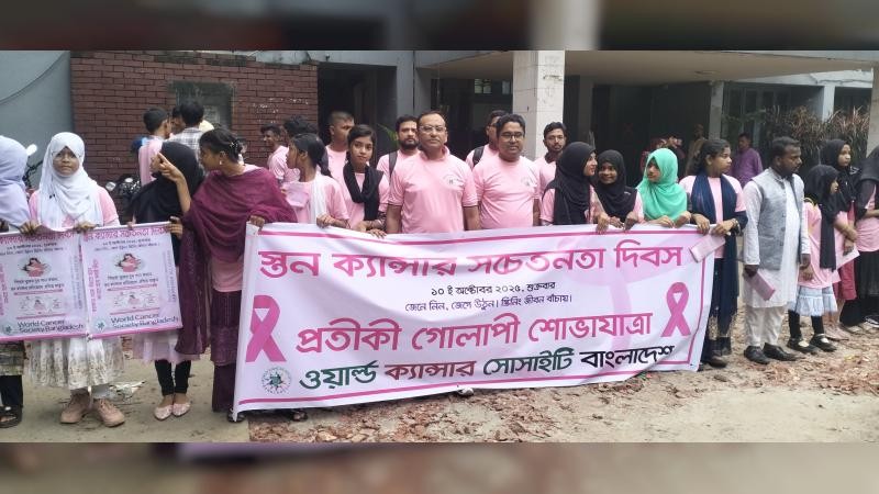 বাংলাদেশ স্তন ক্যান্সার সচেতন ফোরামের উদ্যোগে স্তন ক্যান্সার সচেতনতা দিবস উপলক্ষে জাতীয় প্রেস ক্লাবে আলোচনা ও প্রতীকী গোলাপি শোভাযাত্রা অনুষ্ঠিত হয়। গত ১০ অক্টোবর শুক্রবার স্তন ক্যান্সার সচেতনতা দিবস উপলক্ষে বর্ণাঢ্য এই কর্মসূচি করে ফোরামের সাথে সংযুক্ত সংগঠনগুলো।