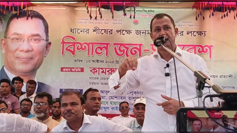 সুনামগঞ্জ ১ আসনের বিএনপির মনোনয়নপ্রত্যাশী এবং সুনামগঞ্জ জেলা বিএনপি আহ্বায়ক কমিটির সদস্য ও তাহিরপুর উপজেলা পরিষদের সাবেক চেয়ারম্যান কামরুজ্জামান কামরুল বলেছেন, বিএনপিকে নিয়ে অনেক ষড়যন্ত্র হচ্ছে, দৃশ্যমান শক্তি ও অদৃশ্য শক্তি উভয়ই কাজ করছে। তবে জনগণের শক্তিই সবচেয়ে বড় শক্তি, আর সেই জনগণের চাহিদা বুঝতে হবে। সোমবার দুপুরে ধানের শীষের পক্ষে জনমতের লক্ষ্যে সুনামগঞ্জের মধ্যনগর উপজেলায় এক বিশাল জনসভায় প্রধান অতিথির বক্তব্যে তিনি এসব কথা বলেন।