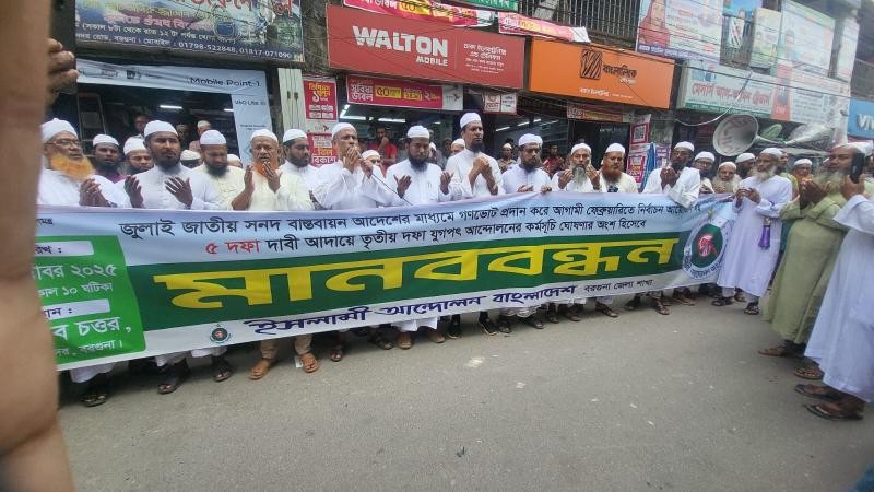 বরগুনা প্রেসক্লাবের সামনে আজ সকাল দশটায় ইসলামী আন্দোলন বাংলাদেশের উদ্যোগে এক মানববন্ধন অনুষ্ঠিত হয়েছে।