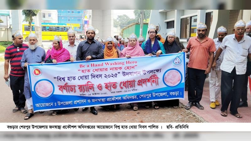 "হাত ধোয়ার নায়ক হোন" এই প্রতিপাদ্যকে সামনে রেখে বগুড়ার শেরপুর উপজেলায় জনস্বাস্থ্য প্রকৌশল অধিদপ্তরের আয়োজনে বিশ্ব হাত ধোয়া দিবস পালিত হয়েছে। বুধবার সকাল ১১টায় উপজেলা চত্বরে র্যালি ও হাত ধোয়ার সঠিক পদ্ধতি প্রদর্শনের মাধ্যমে দিবসটি পালন করা হয়।