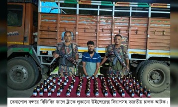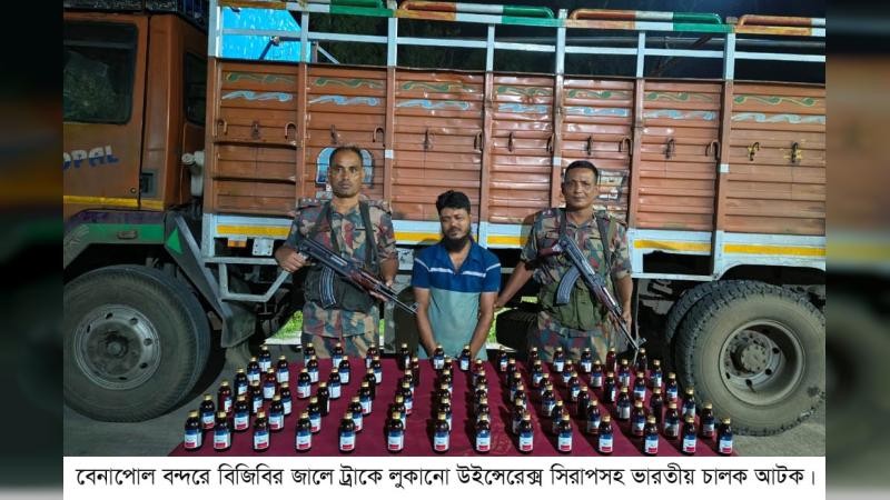 যশোরের বেনাপোল স্থলবন্দরে আমদানি পণ্যবাহী ভারতীয় একটি ট্রাকে লুকিয়ে রাখা বিপুল পরিমাণ উইন্সেরেক্স (নেশাজাতীয়) সিরাপসহ আব্দুল মন্ডল (৩৫) নামের এক ট্রাকচালককে আটক করেছে বিজিবি। এ সময় ট্রাকটিও জব্দ করা হয়েছে।