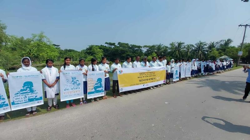 মোংলায় বিশ্ব ব্যাংক ও আন্তর্জাতিক মুদ্রা তহবিলের শোষণ বন্ধ এবং জলবায়ু পরিবর্তনের জন্য দায়ী উন্নত দেশগুলোর কাছে ক্ষতিপূরণ দাবি করে মানববন্ধন অনুষ্ঠিত হয়েছে।