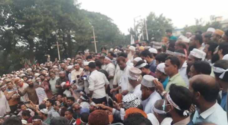 জানা গেছে, ২০১৯ সালের ২৪ মার্চ ঠিকাদার প্রতিষ্ঠান এএসআই জেবি; যার সত্বাধীকারি পার্শবর্তী মঠবাঠিয়া পৌরসভার পৌর মেয়র ফেরদৌস আহমেদ মডেল মসজিদের নির্মানের কাজ শুরু করে। নির্মাণে সন্তুষ্ট না হলে কর্তৃপক্ষ দ্বিতীয় দফা টেন্ডারে মসজিদ নির্মাণ ব্যয় ১৩ কোটি ১৫ লক্ষ ৫১ হাজার ১৬ টাকায় উন্নীত করে ২৪/০১/২০২৪ সালে পুনরায় মডেল মসজিদের কাজের দায়িত্ব পায় এমকেটি ঠিকাদার প্রতিষ্ঠান। উক্ত ঠিকাদার প্রতিষ্ঠানের সত্বাধিকারি জনাব রিপন ওরেফে রাঙ্গা রিপন, যিনি আওয়ামীলীগের একজন নেতা ও বর্তমানে জেল হাযতে থাকায় আবার ঝিমিয়ে পরেছে মসজিদ নির্মাণ কাজে হয়। জেলার ৬ উপজেলার মধ্যে বামনায় অদ্যাবধী মসজিদের নির্মাণ কাজ সম্পন্ন না হওয়ায় স্থানীয়দের মাঝে তৈরী হয়েছে অসন্তোষের। সার্বিক পরিস্থিতি বিবেচনায় বামনা প্রেসক্লাবের পক্ষে ঠিকাদার প্রতিষ্ঠান অপসরণ পূর্বক দ্রুত নির্মাণ কাজ সম্পন্ন হওয়ার লক্ষ্যে বরগুনা জেলা প্রশাসক ও জেলা উন্নয়ন সমন্বয় কমিটি বরাবরে গত ১৫/১০/২০২৫ তারিখে লিখিত ভাবে অবহিত করেন বামনা প্রেসক্লাবের সভাপতি ও উপজেলা বিএনপি’র অহবায়ক সদস্য আবু নাসের সিদ্দিক গোলাম কিবরিয়া। এর প্রেক্ষিতে আজ ১৬ অক্টোবর বৃহস্পতিবার সকাল ১১ টায় বামনা উপজেলা গোল চত্বর এলাকায় আয়োজিত মানববন্ধন অংশগ্রহণ করেন বামনা উপজেলা বিএনপি’র আহবায়ক ইঞ্জিনিয়ার আবুল কালাম আজাদ রানা, উপজেলা বিএনপির যুগ্ম-আহবয়ক মিজানুর রহমান মজনু, উপজেলা জামায়েত ইসলামী এর সভাপতি হাফেজ মাওলানা সাইদুর রহমান ও সাধারণ সম্পাদক সাইফুল্লাহ মানসুর উপজেলা ইসলামী শাসনতন্ত্র আন্দোলনের সভাপতি আলহাজ্ব সোবাহান খানসহ, উপজেলা যুবদলের যুগ্ম-আহবায়ক, রায়হান নাজির ধলু ও উপজেলা ছাত্রদলের সদস্য সচিব সজিব হোসেন মুন্নাসহ আরও অনেকে স্থানীয় ধর্মপ্রাণ মুসুল্লীরা।