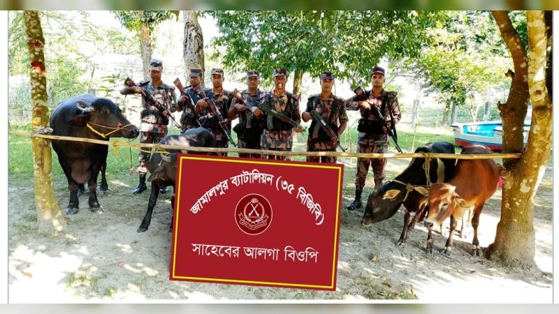 বিজিবি সূত্রে জানা গেছে, বুধবার ১৫ অক্টোবর রাতে সাহেবের আলগা বিওপি'র টহল দল কর্তৃক সীমান্ত পিলার ১০৫১/৪-এস হতে আনুমানিক ৫০০ গজ বাংলাদেশের অভ্যন্তরে ডিগ্রীরচর নামক স্থান হতে ভারতীয় গরু-০২টি ও মহিষ-০২টি আটক করতে সক্ষম হয়। জব্দকৃত গরু ও মহিষ রৌমারী কাস্টমসে জমা করার কার্যক্রম প্রক্রিয়াধীন চলমান।