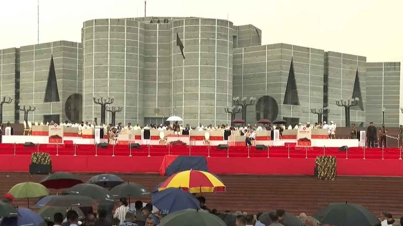 অনুষ্ঠানস্থলে উপস্থিত নেতারা মঞ্চে বসার আগে একে অপরের সঙ্গে কুশল বিনিময় করেন। দক্ষিণ প্লাজার চারপাশে নিরাপত্তা বলয় ঘিরে রেখেছে পুলিশ ও আইনশৃঙ্খলা বাহিনীর সদস্যরা।
