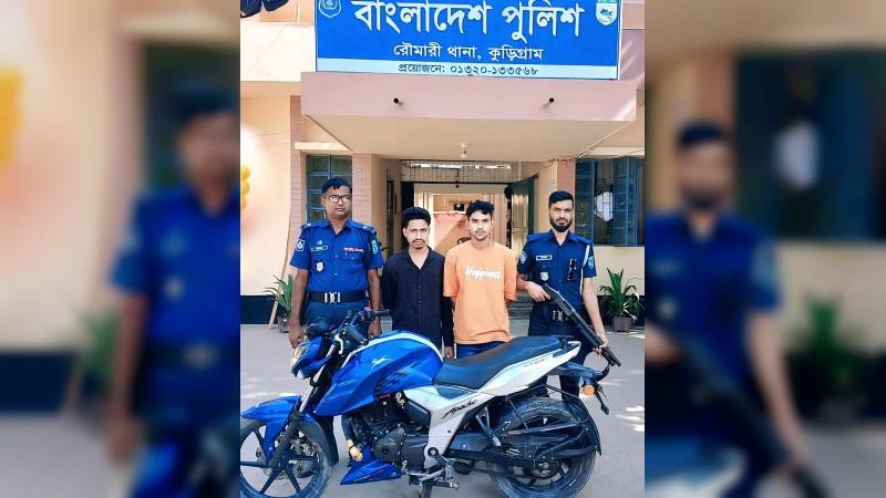 রৌমারী থানার মোটরসাইকেল চুরির মামলার এজাহারনামীয় দুই আসামিকে ময়মনসিংহ জেলা থেকে গ্রেপ্তার করেছে রৌমারী থানা পুলিশ। শনিবার সকালে গোপন সংবাদের ভিত্তিতে তাদের আটক করা হয়। গ্রেপ্তারকৃতরা হলেন মো. রাসেল মিয়া (২৬), পিতা- মো. জেল হক, সাং- বদরপুর উত্তরপাড়া, এবং মো. সবুজ মিয়া (২৬), পিতা- মো. আব্দুল খালেক, সাং- মরিচাকান্দি। দুজনেরই বাড়ি রাজিবপুর থানা এলাকায়, জেলা কুড়িগ্রাম।