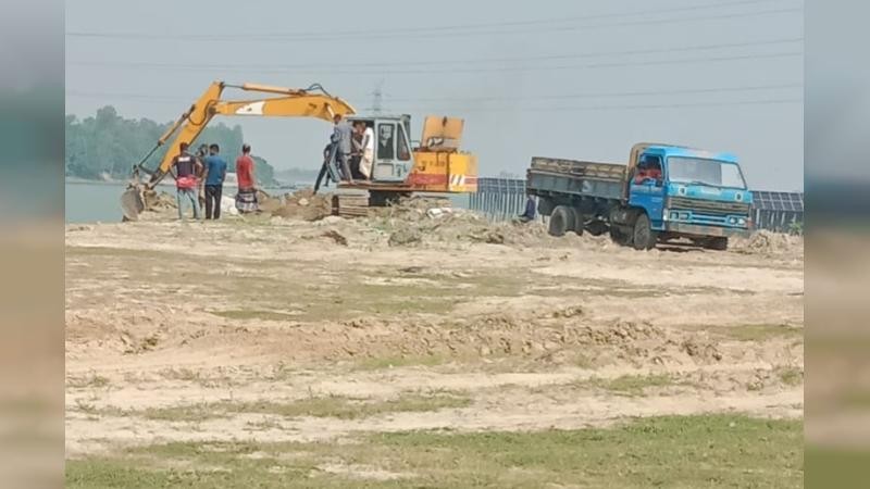 সিরাজগঞ্জের যমুনা বহুমুখী সেতুর পশ্চিমপাড়ে সয়দাবাদ রেলস্টেশন সংলগ্ন সৌরবিদ্যুৎ প্ল্যান্টের পাশে রেলওয়ের উত্তোলিত মাটি দিনদুপুরে বেকু দিয়ে কেটে বিক্রি করছেন সিরাজগঞ্জ সদর উপজেলা বিএনপির সাবেক সভাপতি রফিকুল ইসলাম রফিক।