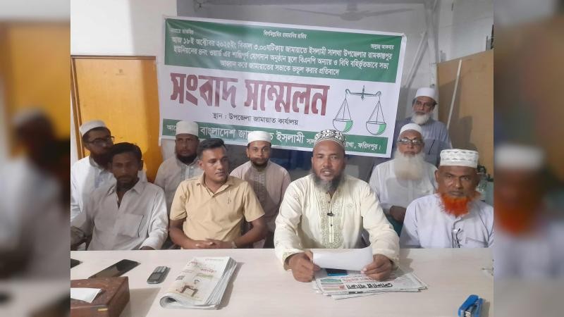 ফরিদপুরের সালথায় বিএনপির নেতাকর্মীদের বাধায় জামায়াতে ইসলামীর পূর্বঘোষিত যোগদান অনুষ্ঠান ও নির্বাচনী সভা পণ্ড হয়ে গেছে বলে অভিযোগ উঠেছে। আজ শনিবার (১৮ অক্টোবর) সন্ধ্যায় উপজেলা জামায়াতের কার্যালয়ে জরুরী সংবাদ সম্মেলন করে এই অভিযোগ করেন সংগঠনটির উপজেলা আমীর অধ্যাপক আবুল ফজল মুরাদ।