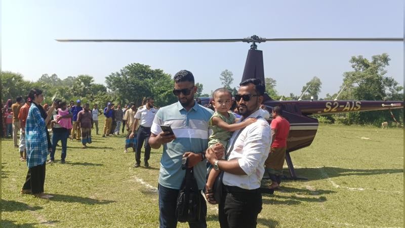 প্রবাস জীবনের ব্যস্ততা থেকে স্বস্তির ছুটি কাটাতে দুই যুবক গ্রামের বাড়িতে হেলিকপ্টার নিয়ে বাড়ি ফেরায় উৎফুল্ল তাদের পরিবার ও এলাকাবাসী।