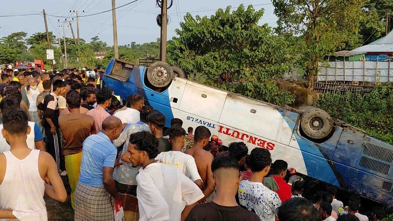 নিয়ন্ত্রণ হারিয়ে খাদে পড়ে যায়। এ সময় খাদে পড়ে বাস উল্টে ঘটনাস্থলেই মনজুরা আক্তার ও তার মেয়ে আয়েশা সিদ্দিকা নিহত হন। এ সময় অন্তত ১০ যাত্রী আহত হয়েছেন। স্থানীয়রা তাদের উদ্ধার করে শান্তিগঞ্জ উপজেলা স্বাস্থ্য কমপ্লেক্সে পাঠালে সেখানে প্রাথমিক চিকিৎসা নেন তারা।