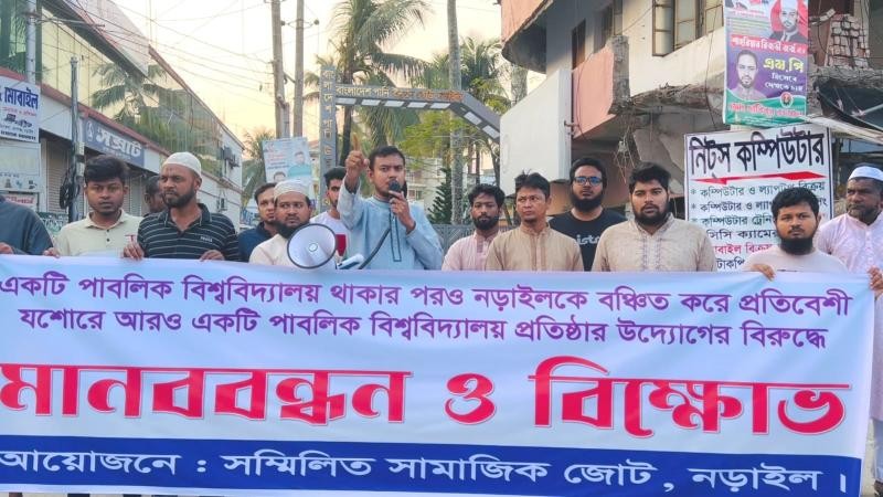 শুক্রবার সম্মিলিত সামাজিক জোটের ব্যানারে নড়াইল প্রেসক্লাবের সামনে অনুষ্ঠিত মানববন্ধন ও বিক্ষোভ কর্মসূচি থেকে এ ঘোষণা দেওয়া হয়।