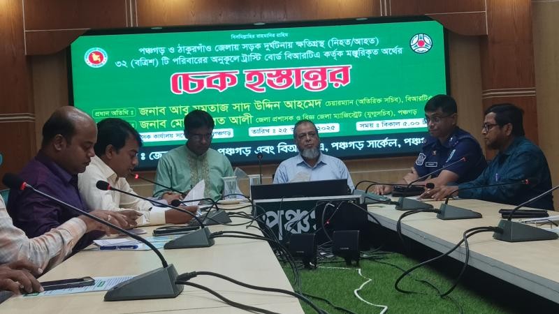 শনিবার রাতে পঞ্চগড় জেলা প্রশাসকের সম্মেলন কক্ষে জেলা প্রশাসন এবং বিআরটিএ পঞ্চগড় সার্কেলের যৌথ আয়োজনে পঞ্চগড় ও ঠাকুরগাঁও জেলায় সড়ক দুর্ঘটনায় ক্ষতিগ্রস্ত (নিহত/আহত) ৩২টি পরিবারের অনুকূলে বিআরটিএ ট্রাস্টি বোর্ডের মঞ্জুরিকৃত অর্থের চেক হস্তান্তর অনুষ্ঠানে প্রধান অতিথির বক্তব্যে তিনি এ কথা বলেন।