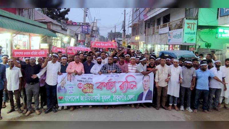 বাংলাদেশ জাতীয়তাবাদী যুবদল ঠাকুরগাঁও জেলা শাখার আয়োজনে সোমবার বিকেলে ঠাকুরগাঁও সাধারণ পাঠাগার মাঠে প্রতিষ্ঠা বার্ষিকীর আলোচনা সভা অনুষ্ঠিত হয়। পরে সেখান থেকে একটি বণ্যাঢ্য র্যালি বের হয়ে শহরের প্রধান প্রধান সড়ক প্রদক্ষিণ করে জেলা বিএনপির পার্টি অফিসের সামনে গিয়ে শেষ হয়।